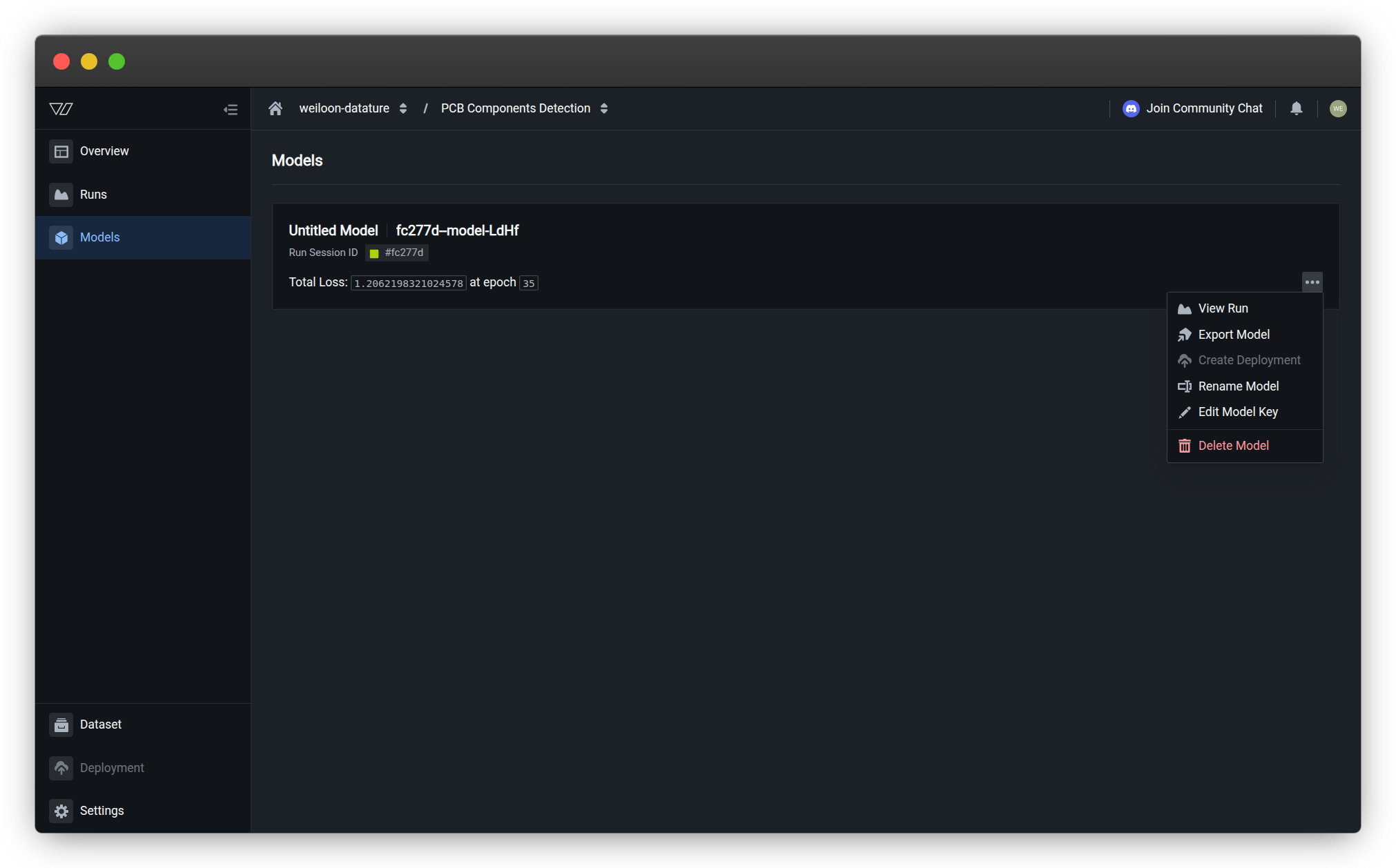 - Export Model — Download model for backup