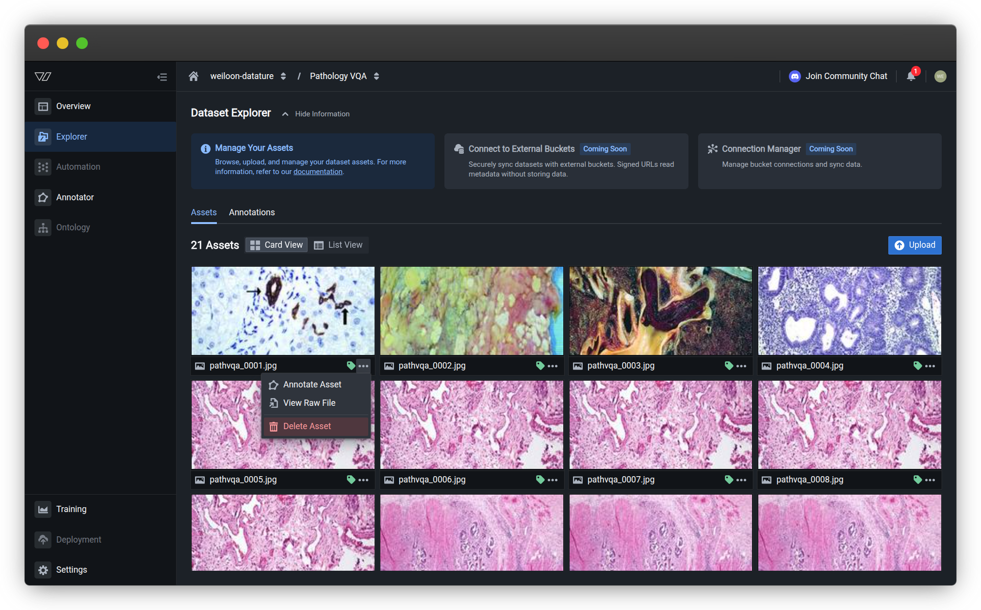 Delete individual assets from your dataset to remove unwanted, duplicate, or low-quality data. This helps maintain dataset quality and optimize storage usage.