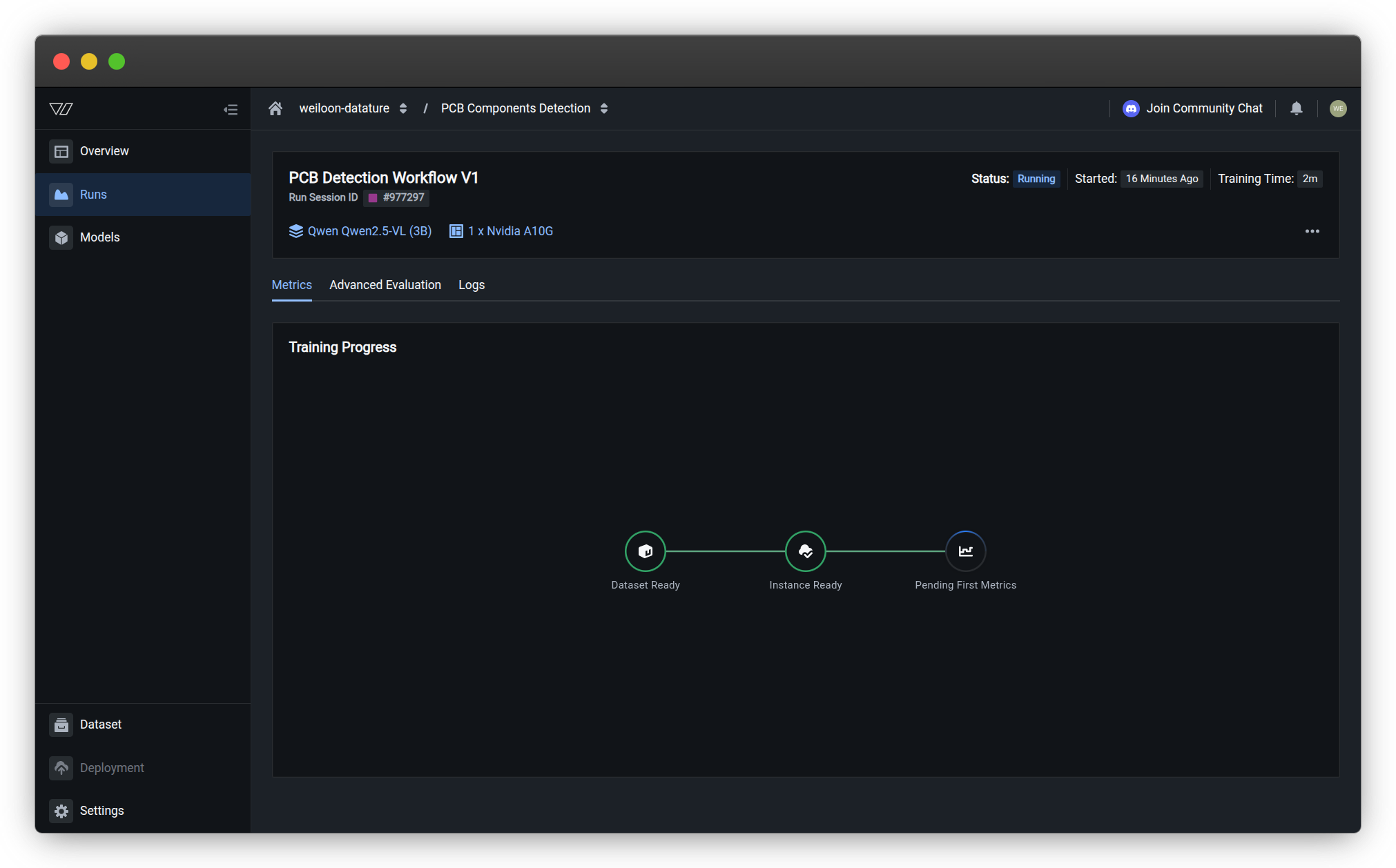 Click on a running or completed run to open its monitoring page