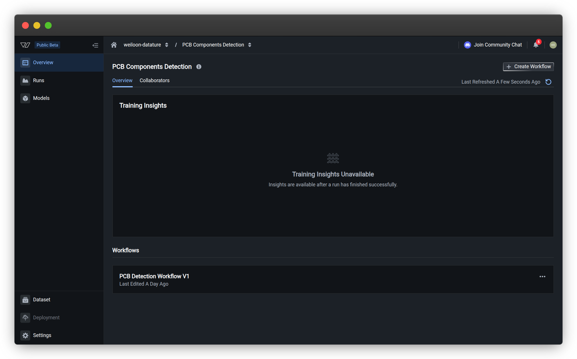 If you need similar workflows, use versioning: PCB-Detection-v1, PCB-Detection-v2, etc.